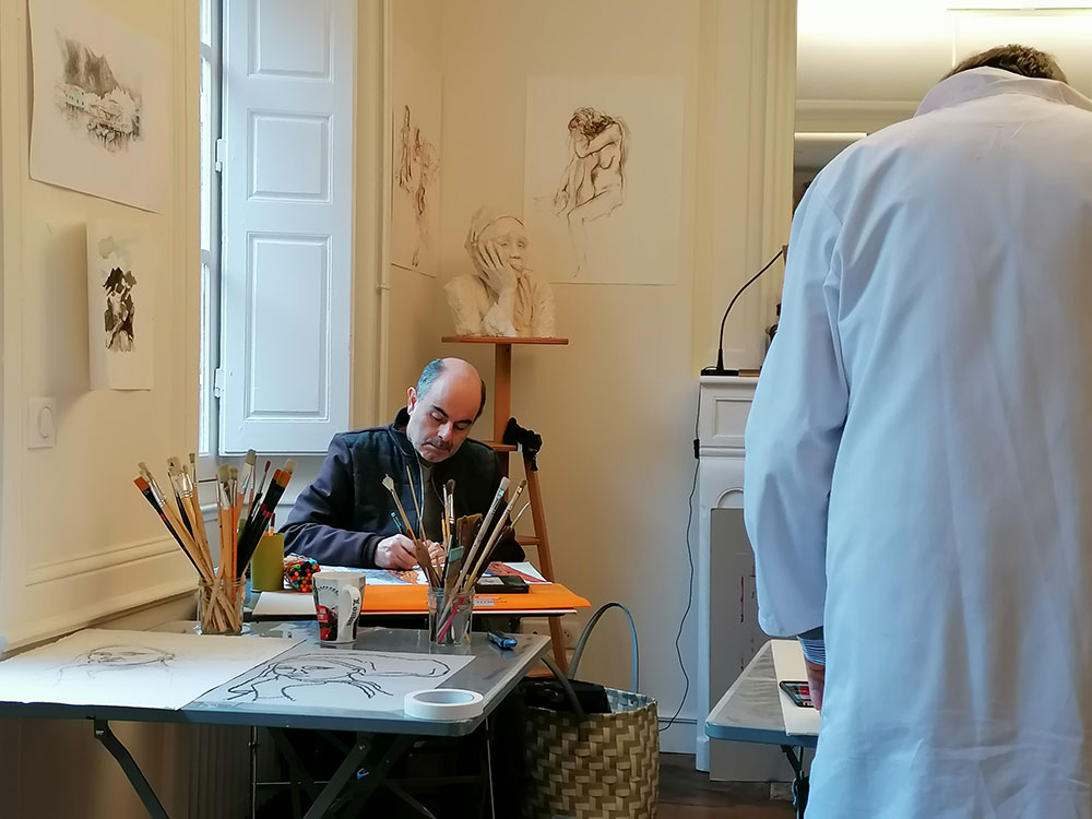 Un atelier ouvert à toutes les techniques de dessin, peinture riche d’échanges et de découvertes.